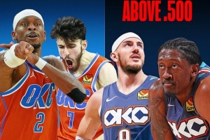 目前雷霆戰(zhàn)機(jī)25勝3負(fù),聯(lián)盟第一。但其中只有6場(chǎng)勝利是對(duì)陣勝率50%+的球隊(duì)。