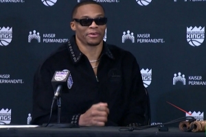 本場比賽威少出戰(zhàn)29分鐘24投8中,三分12中5,罰球2中0砍下21分13籃板(6前場)4助攻2搶斷,另有4次失誤和3次犯規(guī)。