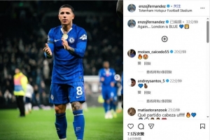 恩佐上傳了自己在比賽中的照片,并配文寫道:“再一次……倫敦是藍(lán)色的????”。
