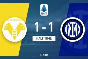 傷停補時2分鐘。上半場比賽結(jié)束,國際米蘭1-1維羅納。