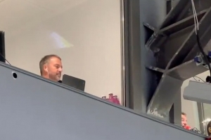 巴薩主帥弗里克由于停賽無法再場邊指揮球隊(duì),他出現(xiàn)在伯納烏看臺(tái)上,將遠(yuǎn)程觀察比賽形勢。