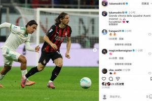 本場比賽40歲莫德里奇首發(fā)打滿全場,他也在社媒曬出本場與迪巴拉對抗照片,配文寫道:“團(tuán)隊取得偉大勝利!讓我們攜手前進(jìn)!加油米蘭!”