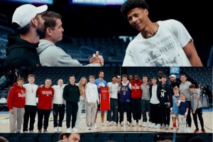 在本場(chǎng)比賽賽前,他大學(xué)隊(duì)友們都來(lái)到了雷霆主場(chǎng)為他加油。費(fèi)爾斯大學(xué)效力于俄克拉荷馬大學(xué),雖然大學(xué)和雷霆隊(duì)不是在一個(gè)城市,但距離非常近,俄城也算是費(fèi)爾斯的半個(gè)主場(chǎng)。