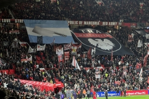 屠夫歸來曼聯(lián)球迷tifo支持利馬,將阿根廷國旗太陽替換為菜刀