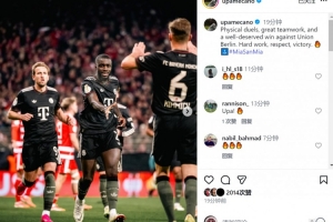 于帕社媒慶祝德國(guó)杯晉級(jí):實(shí)至名歸的勝利,拼搏、尊重、凱旋
