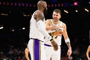 雙核帶隊艱難拿下!湖人發(fā)布贏球海報:詹姆斯和東契奇封面人物