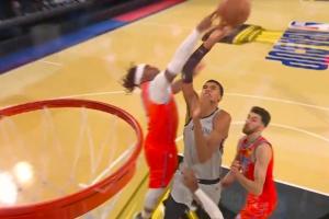 太刺激了!文班亞馬過人沖擊籃筐 多特殺出來直接送出大帽