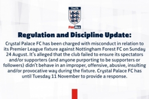 體育資訊11月5日訊 英足總發(fā)布官方公告,確認(rèn)水晶宮俱樂部因球迷行為不當(dāng)遭到指控,需要在11月11日之前做出回應(yīng)。
