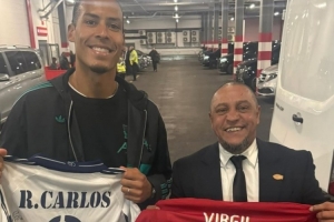 體育資訊11月5日訊 在利物浦結(jié)束與皇馬的歐冠較量后,紅軍隊長維范戴克在社交媒體上曬出與皇馬傳奇左后衛(wèi)羅伯托-卡洛斯的合影,兩人并互換了球衣。