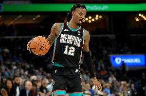 灰熊球星莫蘭特上半場表現(xiàn)一般,多次選擇在外線嘗試并不擅長的三分,雖然助攻不錯,但失誤也略多。