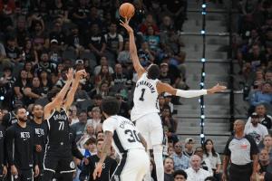 體育資訊10月27日訊 NBA常規(guī)賽,馬刺118-107力克籃網(wǎng),賽后文班亞馬接受了媒體采訪(fǎng)。