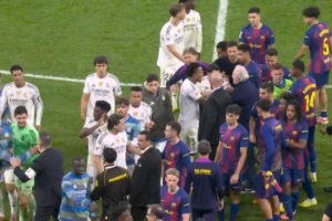 國家德比,皇馬在主場2-1擊敗巴薩。本場比賽堪稱火花四濺,要素拉滿:賽前放話、紅牌、進球、點球、失點、賽后沖突一樣不缺。