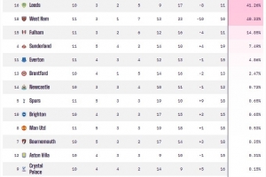 根據(jù)OPTA超級(jí)計(jì)算機(jī)的預(yù)測(cè),狼隊(duì)的降級(jí)概率已高達(dá)90.31%,伯恩利降級(jí)概率也超過(guò)5成為50.12%,排在伯恩利身后的為諾丁漢森林(44.92%)、利茲聯(lián)(41.26%)、西漢姆聯(lián)(40.33%)以及富勒姆(14.85%)。值得一提的是,身為升班馬的桑德蘭表現(xiàn)驚艷,目前他們?cè)谟⒊懈呔拥?位,降級(jí)概率僅為7.49%。