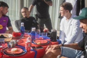 阿勞霍積極倡導(dǎo)這類團(tuán)隊活動,拉菲尼亞也在Instagram中分享了多張聚餐照片。我們可以看到阿勞霍與隊友們以及包括理療師在內(nèi)的俱樂部員工圍坐在餐桌旁,桌上鋪著藍(lán)紅相間的桌布,彰顯了對俱樂部的熱愛。