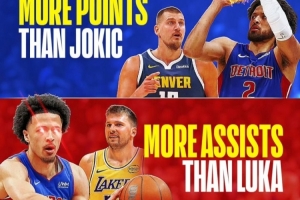 康寧漢姆場均25.6分>約基奇的25.2分;場均9.8次助攻>東契奇的9.5次;活塞目前8勝2負高居東部第一。