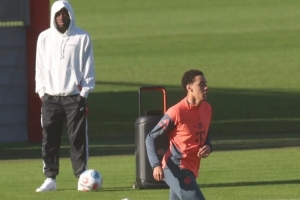 值得一提的是,好友阿方索·戴維斯(25歲/7個(gè)半月前右膝十字韌帶撕裂)在訓(xùn)練課開始后不久便身著休閑服來到訓(xùn)練場。這位加拿大國腳隨著穆西亞拉用手機(jī)連放的XXL音響中說唱樂節(jié)奏舞動(dòng),并為正在進(jìn)行恢復(fù)訓(xùn)練的伙伴歡呼助威。這位左后衛(wèi)情緒高漲,強(qiáng)勁的節(jié)拍響徹拜仁訓(xùn)練基地。