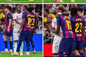 雙方賽后爆發(fā)沖突,維尼修斯和亞馬爾劍拔弩張。但他們在賽中還曾歡笑握手,擁抱致意。