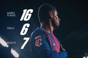巴塞羅那官方也曬出拉什福德的數(shù)據(jù),并且配文:16場(chǎng)6球7助,拉什福德勢(shì)不可擋??