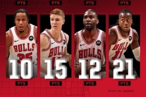 體育資訊10月28日訊 公牛主場128-123擊退老鷹,取得開季3連勝。