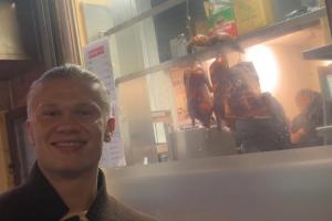 哈蘭德現(xiàn)身曼城一家餐廳,點了一份包含鴨肉和豬肉在內(nèi)的烤肉。哈蘭德的到來讓這家店員們都驚訝不已。