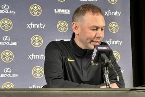賽后,小吧在新聞發(fā)布會(huì)現(xiàn)場(chǎng),掘金主教練小阿德?tīng)柭邮懿稍L,談到了第四節(jié)大比分領(lǐng)先還讓約基奇上場(chǎng)一事。