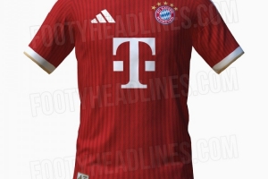 拜仁26-27賽季主場球衣諜照:傳統(tǒng)紅色基調(diào)+細條紋,搭配金色點綴