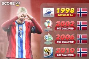 哈蘭德和挪威隊(duì)距離重返世界杯決賽圈只是一步之遙了,上一次他們?cè)谑澜绫料噙€是1998年。這個(gè)賽季都目前為止,“魔人布?xì)W”各項(xiàng)賽事已經(jīng)打進(jìn)30球,他們會(huì)成為美加墨的黑馬么?