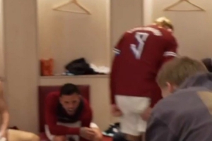 比賽結(jié)束之后,哈蘭德與隊友在更衣室內(nèi)載歌載舞慶祝,現(xiàn)場氛圍十分熱烈。