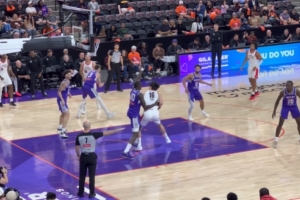 比賽中,楊瀚森有一次單挑馬盧阿奇被防下;對此,美記Shane Young評論道:“馬盧阿奇在內(nèi)線全力防下楊瀚森。成功阻止對方后,弗萊明立即快攻反擊,并在快攻中果斷出手?!?/p>