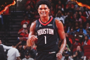 賽后,火箭官方曬出本場贏球海報(bào),封面人物是阿門·湯普森。