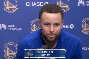 賽后,庫里出席新聞發(fā)布會,接受了記者的采訪。