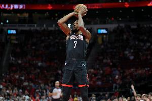 此役火箭球星杜蘭特出場(chǎng)45分鐘24投13中,三分8中2、罰球7中7砍下35分5籃板6助攻1蓋帽,有5失誤,正負(fù)值+4。