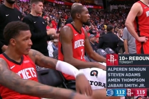 本場(chǎng)比賽火箭四人籃板上雙,據(jù)現(xiàn)場(chǎng)統(tǒng)計(jì),這是自隊(duì)史2001年來首次。