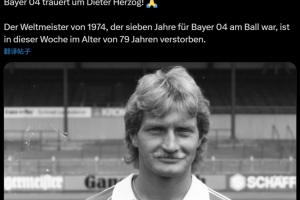 在官方公告中,勒沃庫森聲明:“俱樂部對迪特·赫爾佐格的逝世表示哀悼! ??他曾效力于勒沃庫森7年,這位1974年世界杯冠軍隊成員于本周去世,享年79歲?!?/p>