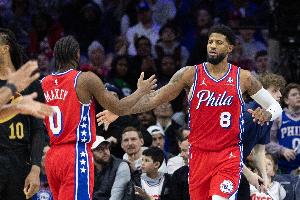 本場(chǎng)比賽馬克西出戰(zhàn)46分鐘,30投18中,三分15中6,罰球14中12砍下生涯新高的54分(此前是52),另有5籃板9助攻3搶斷3蓋帽;喬治打了24分鐘12投7中,三分7中4、罰球4中3拿到21分5籃板3助攻2搶斷。