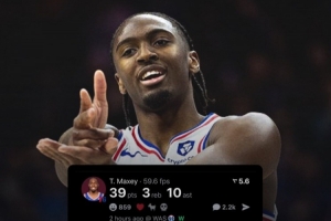 馬克西本場比賽出戰(zhàn)47分鐘,25投11中,三分9中3,罰球16中14砍下39分3籃板10助攻。