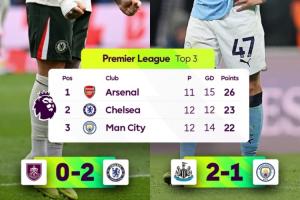 體育資訊11月23日訊 英超第12輪多場戰(zhàn)罷,切爾西贏球后反超輸球的曼城升至英超第2。