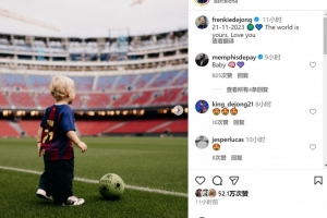 體育資訊11月24日訊 巴薩中場(chǎng)德容更新社媒動(dòng)態(tài),為兒子邁爾斯慶生。