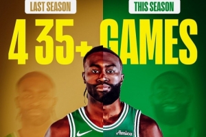 這也是本賽季布朗第四次單場得分達到35分(其中一場41分),而他上賽季一共才4次單場至少得分35分。