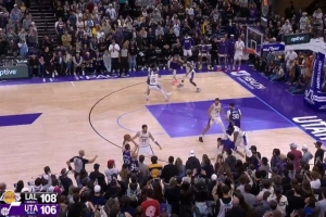 當(dāng)時湖人108-106領(lǐng)先爵士2分,爵士錯失了扳平比分的機會。