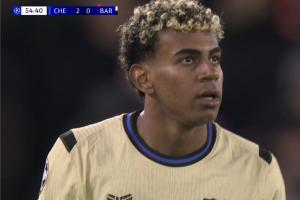 體育資訊11月26日訊 歐冠聯(lián)賽階段第5輪,切爾西主場(chǎng)迎戰(zhàn)巴塞羅那,比賽第55分鐘,埃斯特旺連過(guò)多人爆射得手,切爾西2-0領(lǐng)先,隨后鏡頭立刻給到了亞馬爾。