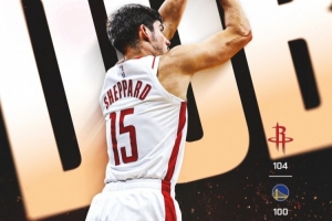 體育資訊11月27日訊 當?shù)貢r間感恩節(jié),火箭官方曬出了戰(zhàn)勝勇士的贏球海報,封面人物是謝潑德,背景字樣是“勝利(dub)”。