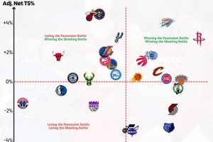 橫軸往右代表能比對手獲得更多出手 縱軸向上是比對手終結(jié)效率更高