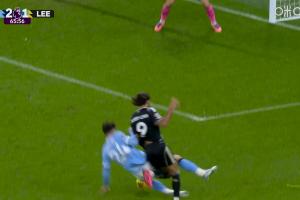 體育資訊11月30日訊 曼城vs利茲聯(lián)第66分鐘,格瓦迪奧爾飛鏟直接放倒了勒溫,裁判判罰點(diǎn)球,外加黃牌一張!恩梅查點(diǎn)射沒進(jìn),但是補(bǔ)射進(jìn)了。此時(shí)比分變?yōu)槁?-2利茲聯(lián)。