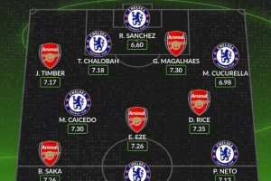 體育資訊11月30日訊 本輪英超焦點(diǎn)戰(zhàn)阿森納對(duì)陣切爾西即將打響,數(shù)據(jù)網(wǎng)站W(wǎng)hoscored也盤(pán)點(diǎn)了本賽季英超兩隊(duì)隊(duì)員場(chǎng)均評(píng)分最高陣,具體如下: