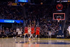 GIF-波杰姆斯基奔襲壓哨單臂三分拋投命中 分差三分!