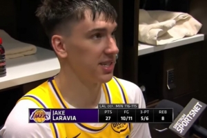 體育資訊10月30日訊 湖人客場(chǎng)116-115絕殺森林狼,賽后,湖人球員拉拉維亞接受媒體采訪。