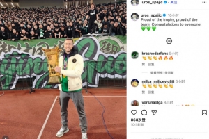 賽后國安外援斯帕吉奇更新社媒,曬出自己手捧足協(xié)杯冠軍獎杯與球迷合影的照片,并配文寫道:“為這份榮譽感到自豪,為球隊感到自豪!祝賀與這個冠軍相關的每一個人!”