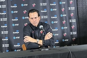 賽后采訪,主帥斯波表情凝重,談到本場(chǎng)失誤他表示:“對(duì)手在第二節(jié)打得非常棒,而我們總在犯同樣的錯(cuò)誤,當(dāng)我們無(wú)法投進(jìn)球時(shí),我們的防守會(huì)陷入困境,無(wú)法阻止對(duì)手得分。你不能讓防守來(lái)完全決定勝負(fù)……不管你投不投得進(jìn)三分……你需要找到其他贏球的方式?!?/p>