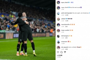 他也在賽后通過社媒曬出自己同馬爾穆什相擁慶祝的合照,并配文:“晉級下一輪??”